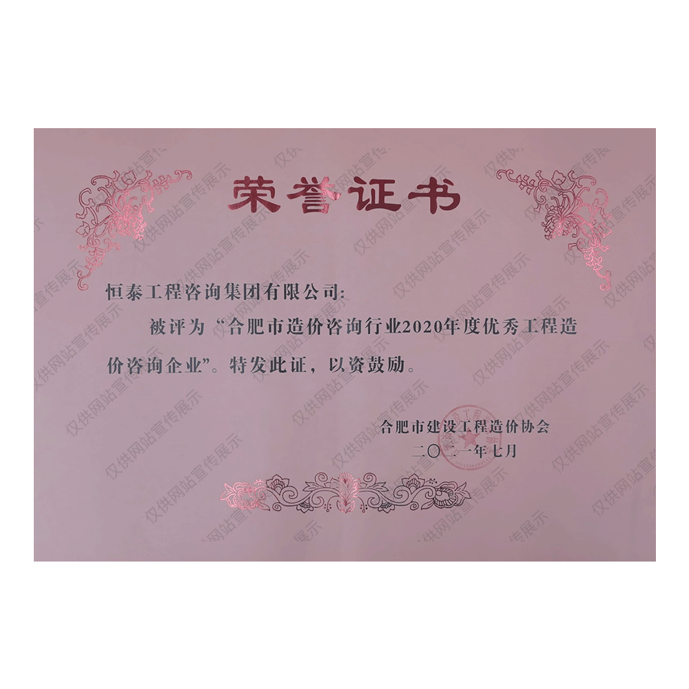 合肥市造价咨询行业2020年度优秀工程造价咨询企业