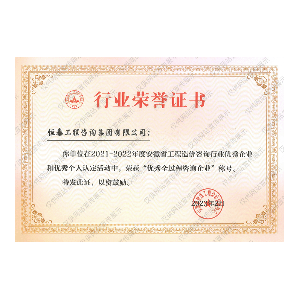 2021-2022年度安徽省工程造价咨询行业优秀企业