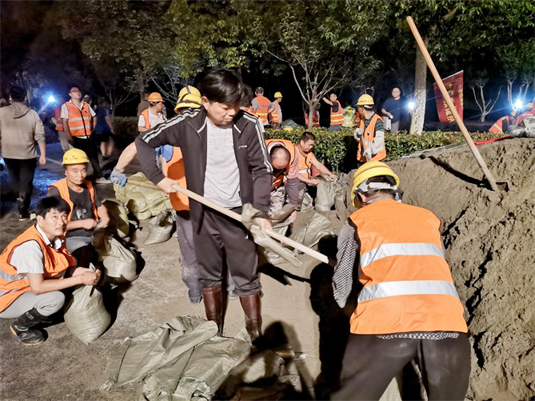 黑夜里,大家踏着泥泞、肩扛沙袋、手拿铁锹,争分夺秒加固堤坝。他们经过一夜不眠不休的奋战,在巢湖边筑起了高高的“堡垒”,为防汛救灾贡献了恒泰人的力量。