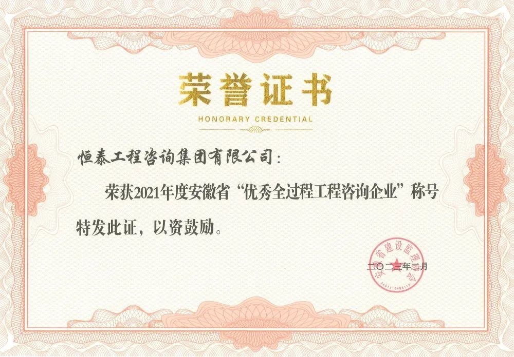 近日,安徽省住房和城乡建设厅、交通运输厅、省水利厅、省通信管理局联合公布了“2021年度安徽省优秀建筑业企业”名单。