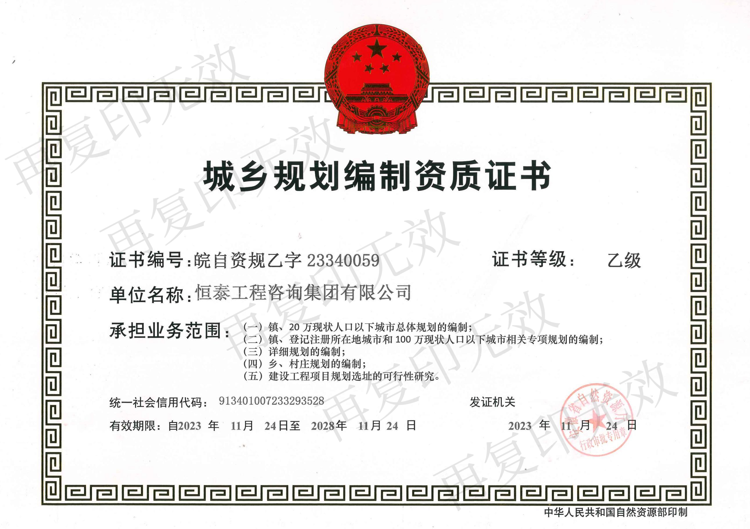 2023年11月24日,从安徽省自然资源厅传来喜讯,我司取得城乡规划编制乙级资质。这标志着公司业务范围得到了扩展,也为今后的市场开拓提供了发展空间和平台,更助力于公司全过程工程咨询服务的健康发展。