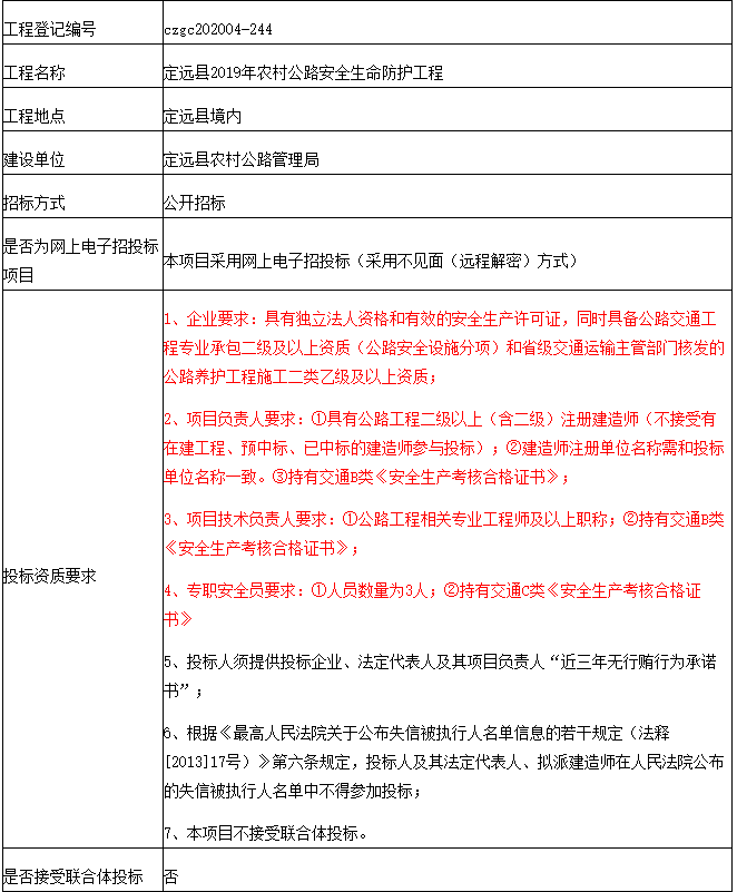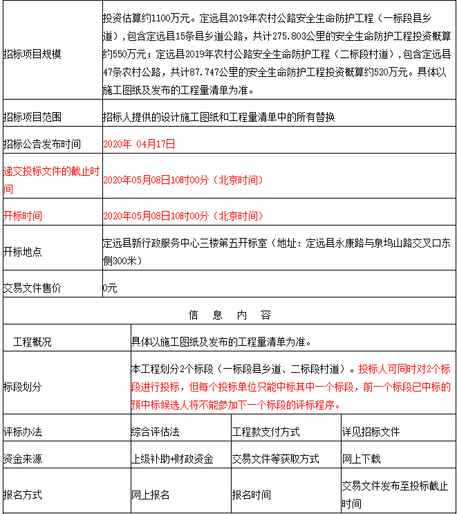 定远县2019年农村公路安全生命防护工程招标公告