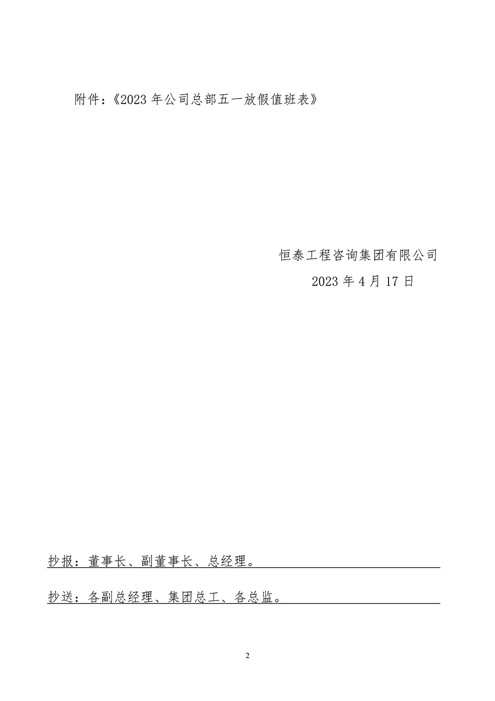 恒泰工程咨询集团有限公司 关于2023年端午节放假的通知