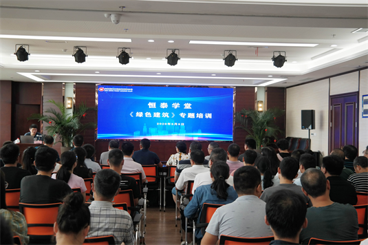 为创建学习型企业,全面提高员工的综合素质和业务水平,更为进一步落实“以人为本、创造一流”的企业管理理念。2020年8月8日上午,恒泰学堂特邀绿建筑设计师叶雷振主讲《绿色建筑》,公司员工100多人参加了本次专题讲座。