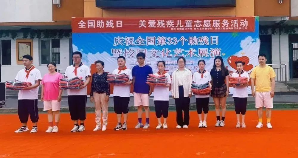 2023年5月18日上午,值全国助残日到来之际。集团公司副董事长崔晓萍女士带领公司党支部、团支部、合唱团及爱心基金会成员来到肥东县特殊教育学校慰问。