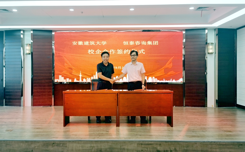 座谈会上,安徽建筑大学原副校长王志建一行观看了我司企业宣传片,并听取了我司第一个五年规划纲要的详细介绍。对我司近年取得成绩表示肯定,同时双方进行了深入的交流。会后,建大经济与管理学院院长彭志胜教授与我司董事长余国海签订了《校企合作框架协议》。