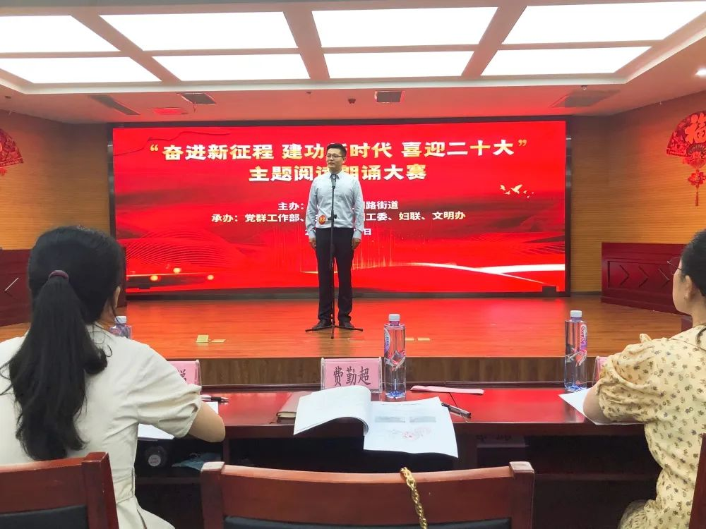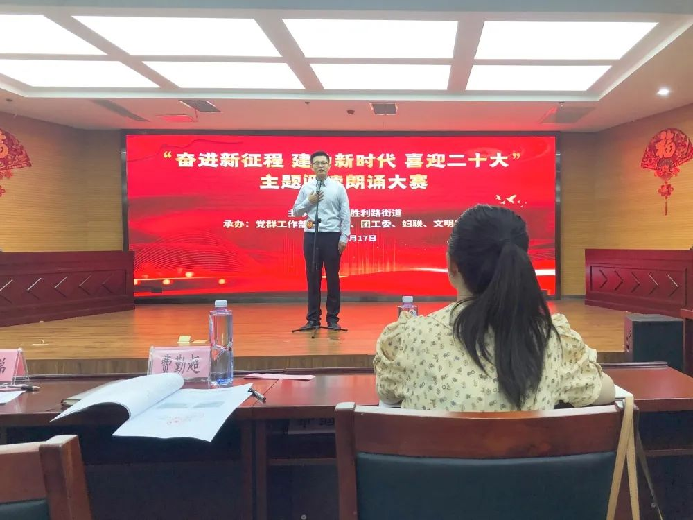 为深入学习宣传贯彻习近平新时代中国特色社会主义思想,重温党的百年历程,以实际行动和优异成绩迎接党的二十大胜利召开。2022年8月17日上午,胜利路街道举办了“奋进新征程 建功新时代 喜迎二十大”主题阅读朗诵大赛。我司员工吴佳成代表公司参赛,并获得第二名的好成绩。