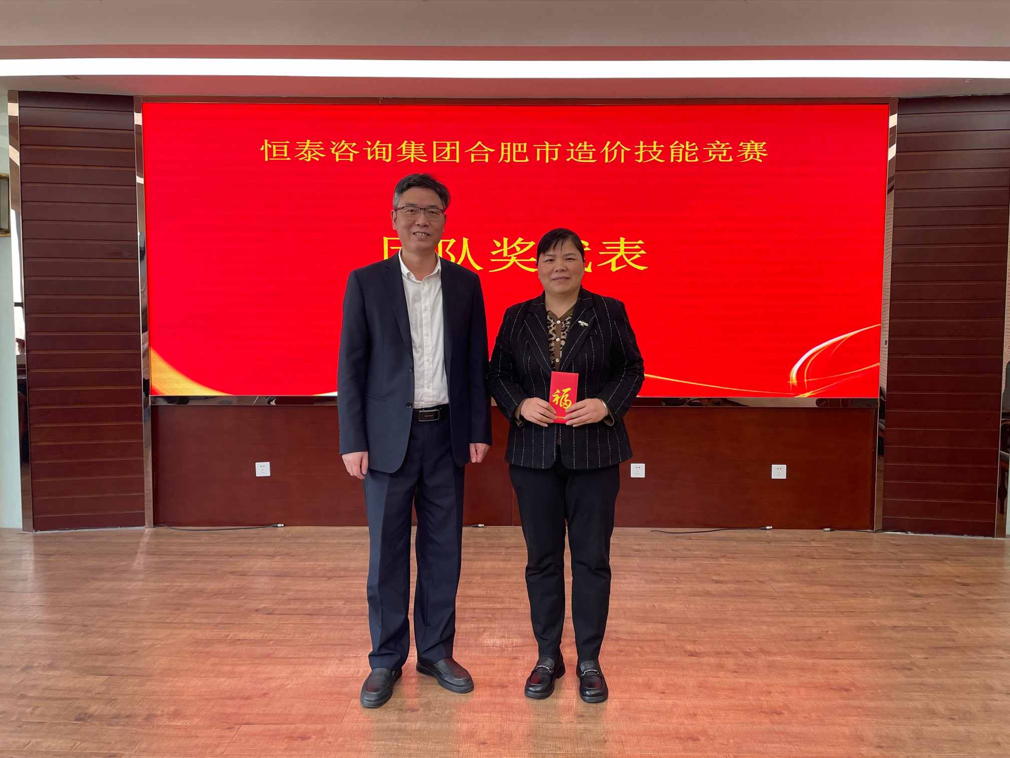 在热烈掌声中,颁奖环节依次进行。集团公司技能竞赛小组领导分别为工程监理类、工程造价类、工程招标代理类技能竞赛获奖个人与团队颁发奖金,现场气氛热烈: